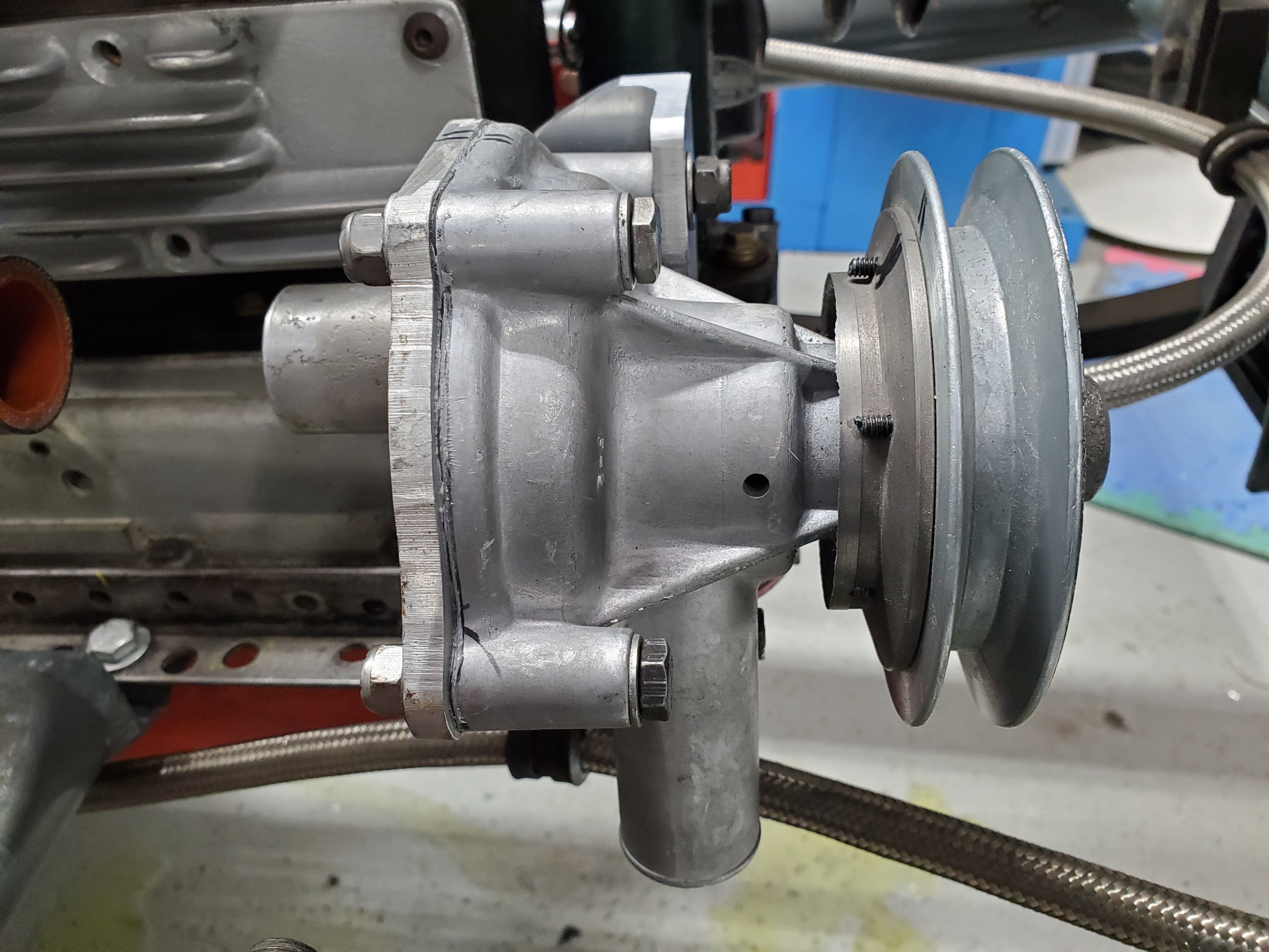 A project I started December 2017 was to convert to a Subaru Brat water pump. I had previously made the pulley, https://lchrestoration.com/category/1954-h-mod-siam/. Now I needed to make a bracket to hold the pump and complete the plumbing.
