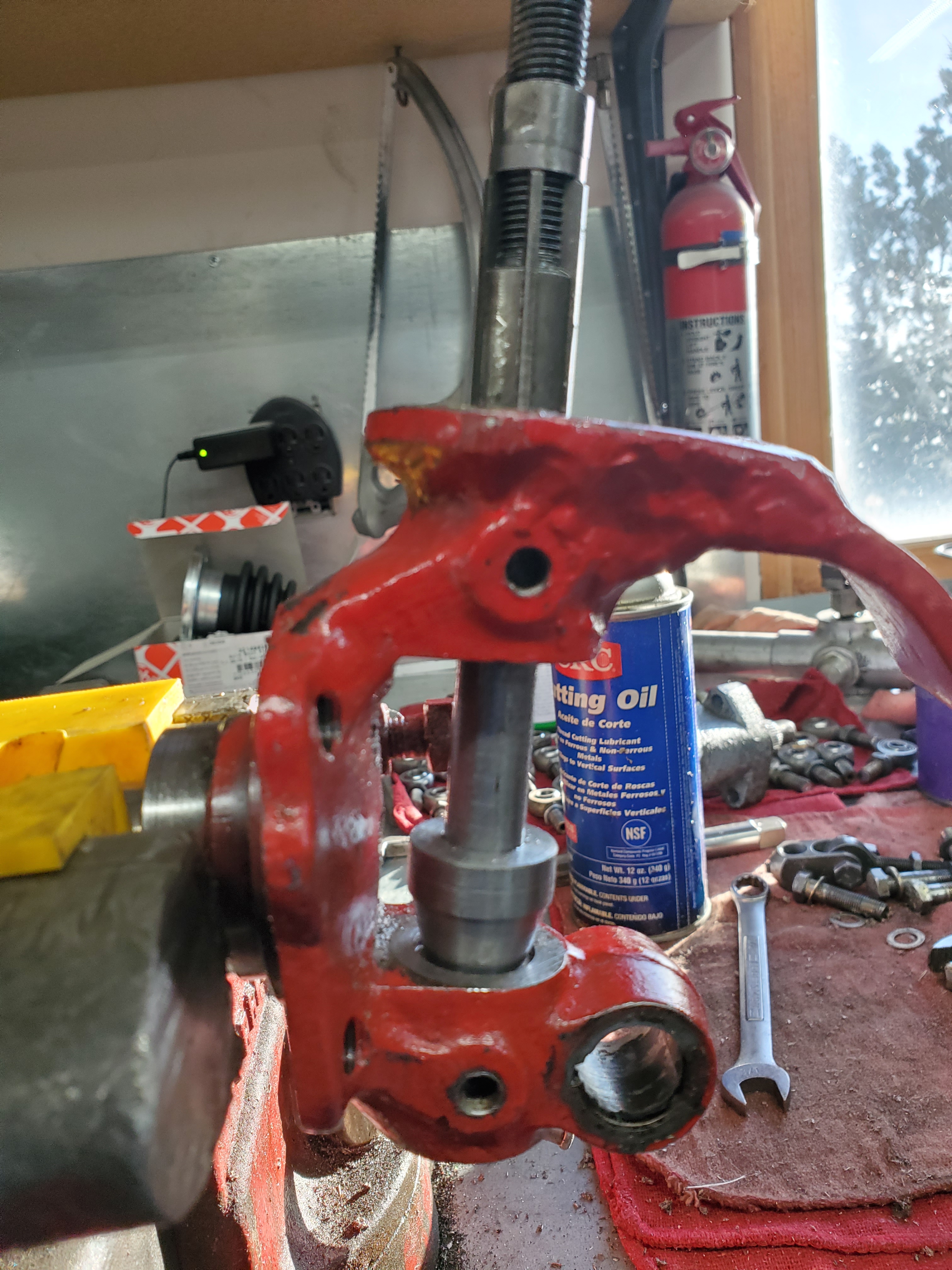First I rebuilt the the Crosley Steering box with new bushings and seals from Service Motors, https://www.servicemotors.net/. Then I tackled the fun job of the Crosley front axle King Pins. The King pins required some tooling to allow reaming to fit and maintaining the alignment of the top and bottom. So I built this reamer tool.