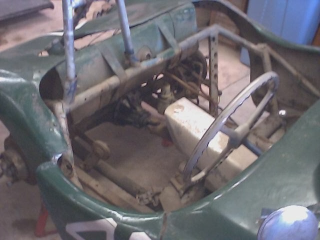 Car had a Crosley engine, “Standard” 4 speed transmission and Fiat 500 rear axle and drum brakes, Crosley front axle and Crosley drum brakes.  Frame is a 3″ tube ladder frame.  (Pictures to be added soon).