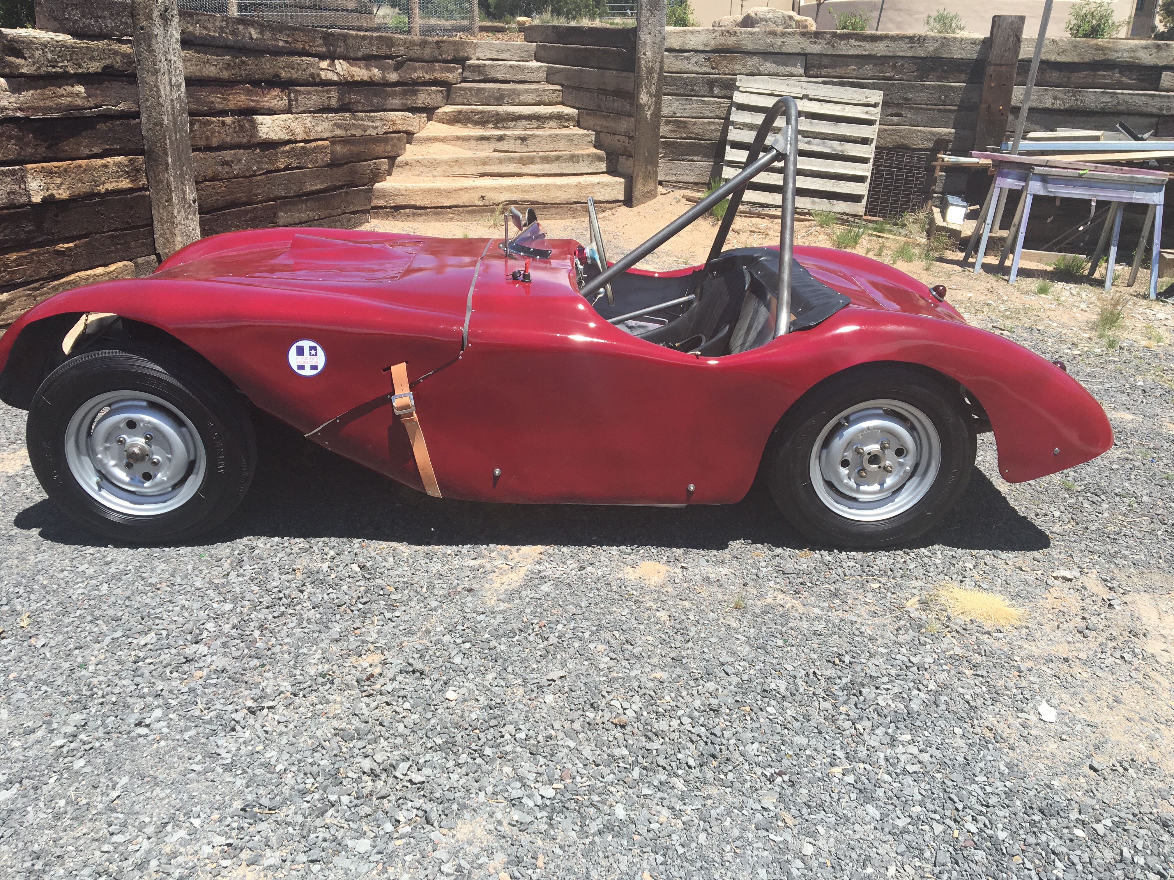 SIAM is a custom chassis built by Purdue Engineering students in 1954.  Was re-bodied in 1956 with the John Mays “Fibersport” body.